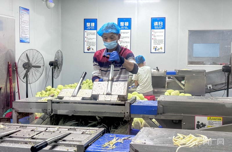 村民在企业从事木瓜丝加工工作(央广网记者 梁瑜琳 摄)