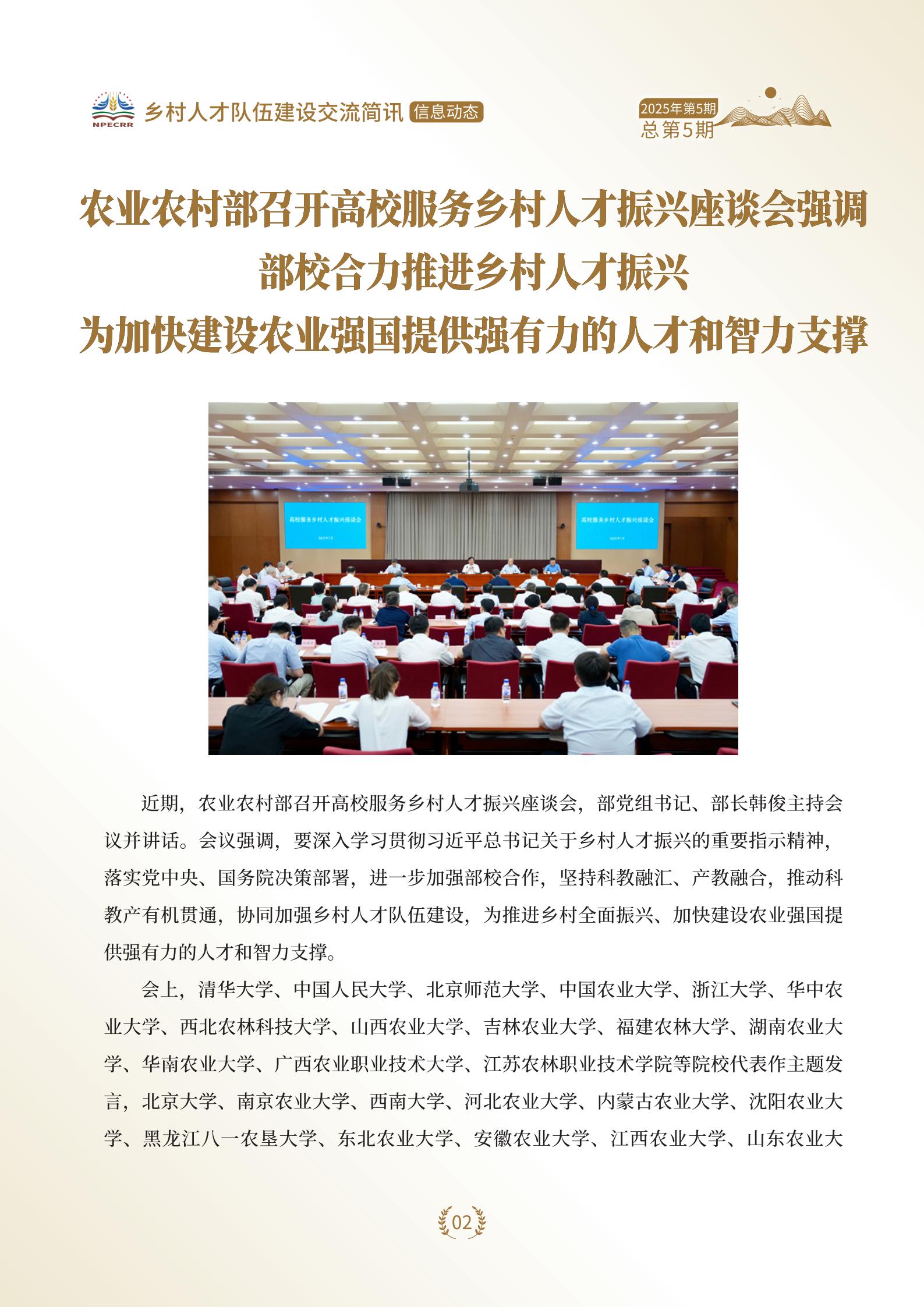 乡村振兴人才队伍建设交流简讯2025年第五期