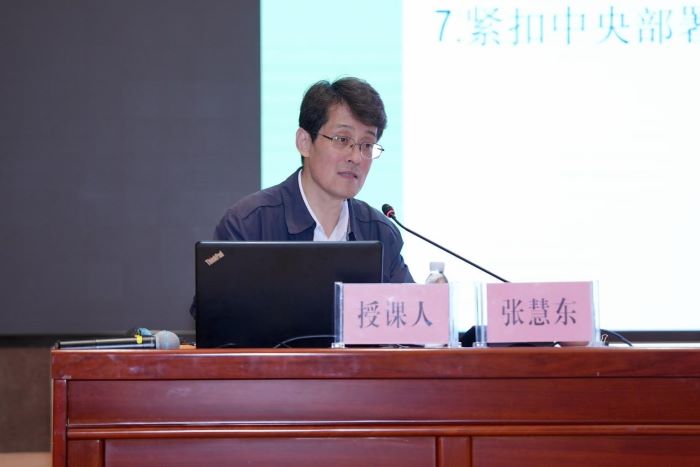 全国乡村振兴宣传教育中心主任张慧东围绕“努力创建乡村振兴引领示范,在农业农村现代化新征程中书写新的壮美篇章”进行专题授课